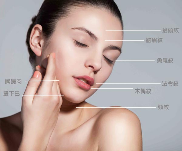 抬頭紋/皺眉紋/魚尾紋/法令紋/嘴邊肉/木偶紋/雙下巴/頸紋